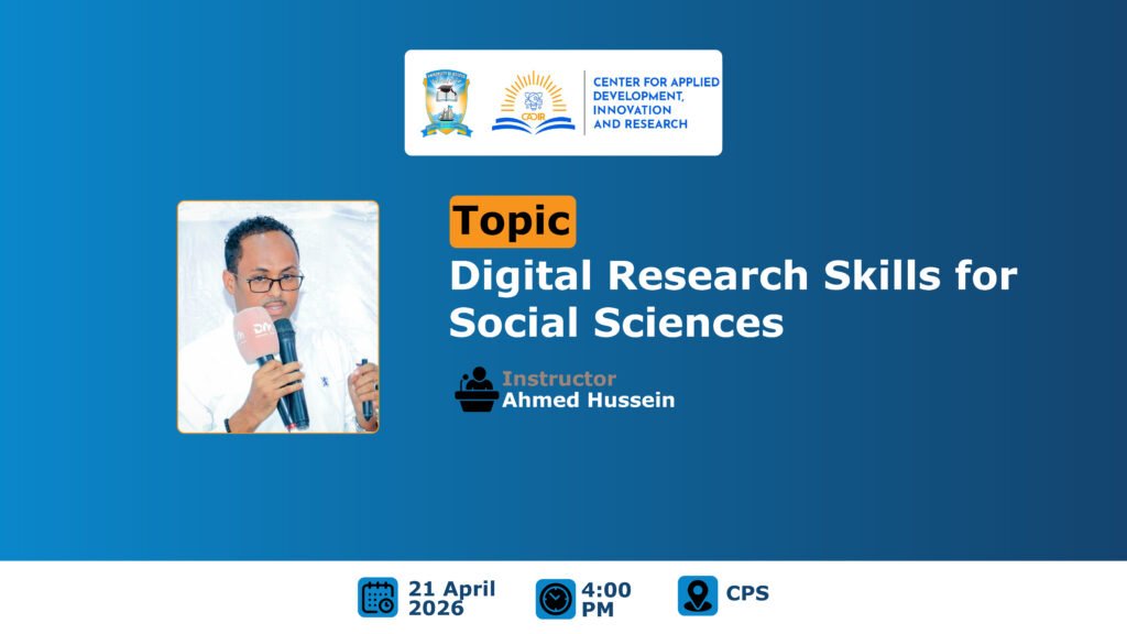 The Centre for Applied Development, Innovation and Research (CADIR) at the University of Bosaso – Garowe recently organized a specialized training program designed to enhance the research capabilities of students, specifically those within the Faculty of Social Sciences.